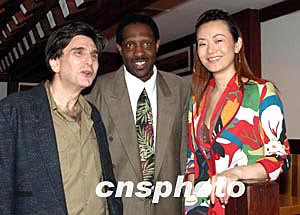 旅美華裔歌手張妮可(右),將在四月二十四日NBA季后賽休斯頓火箭隊(duì)與洛杉磯湖人隊(duì)的比賽中獻(xiàn)唱自己的第一首英文歌曲《姚明之歌》,祝愿姚明表現(xiàn)卓著。美東時(shí)間四月二十二日中午,張妮可在紐約與這首歌的共同作曲者貝林(左)和郝斯頓(中)向媒體宣布了這個(gè)消息。作者:龔文謨