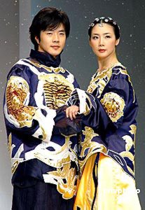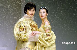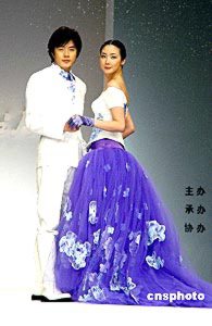 2004年4月22日,韓國服飾設(shè)計(jì)大師ANDREKIM的服裝發(fā)布會在上海舉行。權(quán)相宇與崔智友T臺上演藝?yán)寺矍椤?楊明靜 攝