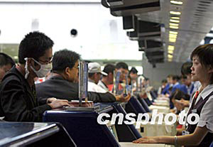 北京市新確診一例SARS疑似患者后,四月二十三日,北京機(jī)場(chǎng)的旅客流量不減,偶爾可見(jiàn)少量戴上大口罩的旅客。中新社記者:張勤