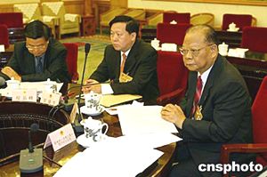 十屆全國人大常委會第九次會議四月二十五日在北京人民大會堂舉行,吳邦國委員長主持會議。常委會組成人員對香港特區(qū)行政長官提交的《關(guān)于香港特別行政區(qū)二零零七年行政長官和二零零八年立法會產(chǎn)生辦法是否需要修改的報(bào)告》進(jìn)行了審議。中新社記者:毛建軍