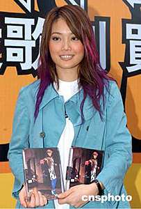 歌星容祖兒4月28日在香港商業(yè)電臺出席《id音樂維新》記者會,手持其個(gè)人音樂專輯,呼吁大家支持正版音樂。作者:鄧慶樂