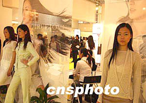 幾位身著春裝的姑娘在北京一家服裝店前擔(dān)任活動(dòng)模特。今春中國氣候時(shí)冷時(shí)熱,變化異常,商家隨之推遲夏裝上市。中新社記者:賈國榮