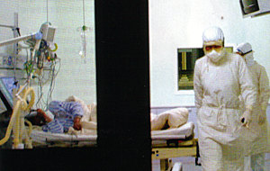 李乃卿介紹說,從去年SARS之后,東直門醫(yī)院的SARS預備隊就從來沒有解散過,期間還經(jīng)常自覺進行演習。這次得到北京發(fā)現(xiàn)SARS疑似病例的消息后,4月23日上午,全院就召開了緊急動員會,開始執(zhí)行嚴格的消毒措施,組織抗SARS材料的學習和模擬訓練。