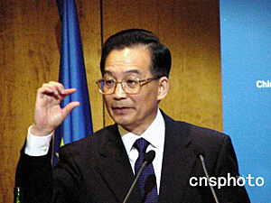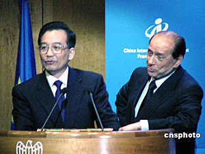 “對(duì)于我們會(huì)談的情況,貝魯斯科尼總理已經(jīng)做了全面的介紹,我只做幾點(diǎn)補(bǔ)充:第一,我們將簽署中、意兩國(guó)聯(lián)合聲明,這是中國(guó)和意大利建交后簽署的第一份政府間的聲明;第二,為了促進(jìn)中、意兩國(guó)的友好合作關(guān)系,我們決定建立中意政府委員會(huì)。中國(guó)和外國(guó)建立這樣高層次的協(xié)調(diào)機(jī)構(gòu),也是第一次!睖乜偫碓谙蛴浾弑硎疚繂柡蟾嬖V大家說。