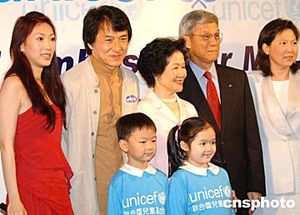 昨午于記者會(huì)上,成龍也將經(jīng)歷跟一眾分享,而聯(lián)合國(guó)兒童基金香港委員會(huì)副主席陳方安生昨日亦特頒授紀(jì)念品予成龍。
