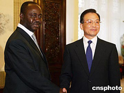 溫家寶說,目前中國與中非關(guān)系發(fā)展勢頭良好,各領(lǐng)域合作不斷加強(qiáng)。我們贊賞中非政府堅(jiān)持奉行一個(gè)中國的政策,只要雙方政治上相互尊重和互不干涉內(nèi)政,經(jīng)濟(jì)上相互支持和加強(qiáng)合作,積極推動(dòng)雙方在各領(lǐng)域的交流,兩國關(guān)系就一定能夠持續(xù)、穩(wěn)定、健康地向前發(fā)展。中國政府愿與中非政府為此共同作出努力。