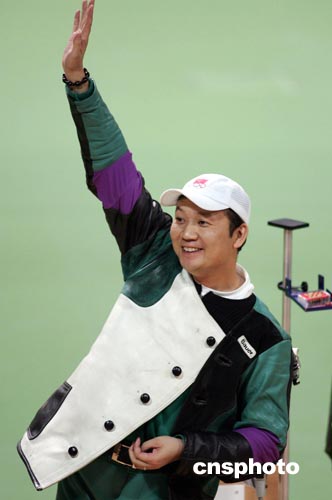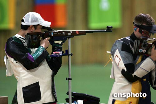 當?shù)貢r間八月二十二日下午,在雅典奧運會男子三乘四十射擊比賽中,中國的賈占波以一千二百六十四點五環(huán)的成績獲得金牌。中新社記者:毛建軍