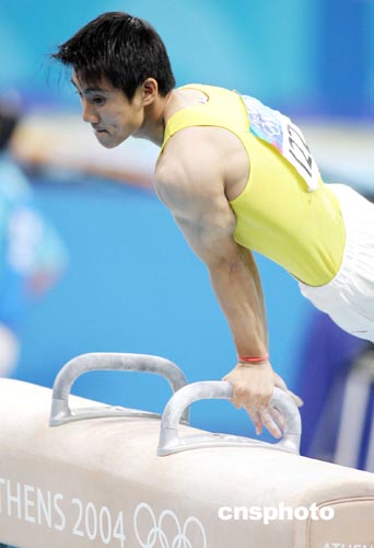 中新社雅典八月二十二日電 (記者宋方燦)在今天晚上進(jìn)行的雅典奧運(yùn)會(huì)體操鞍馬比賽中,小將滕海濱不負(fù)眾望,奪取了中國(guó)體操隊(duì)在本屆比賽中的第一枚金牌。不過(guò),他在賽后表示“功不抵過(guò)”。