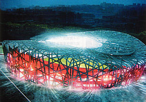 此時(shí),作為2008年北京奧運(yùn)會(huì)主會(huì)場(chǎng)的國(guó)家體育場(chǎng),已在京北破土動(dòng)工7個(gè)月,有1800多根長(zhǎng)38.3米、直徑近1米的樁已被打入地下,按原來(lái)的計(jì)劃,到2006年底,這里將搭建出一個(gè)巨大的白色“鳥(niǎo)巢”。