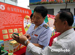 開展保護(hù)注冊(cè)商標(biāo)專用權(quán)整治行動(dòng),是中國國務(wù)院今年工作要點(diǎn)的一項(xiàng)重要內(nèi)容,也是全國工商系統(tǒng)今年整頓規(guī)范市場(chǎng)和經(jīng)濟(jì)秩序的重點(diǎn)之一。山西工商系統(tǒng)集中開展了查處涉外商標(biāo)案件及食品、藥品商標(biāo)案件。圖為在八月二十三日召開的“打商標(biāo)侵權(quán),保知識(shí)產(chǎn)權(quán)”現(xiàn)場(chǎng)會(huì)議上,榆次工商系統(tǒng)執(zhí)法人員介紹受到工商部門保護(hù)的地方著名商標(biāo)及名優(yōu)產(chǎn)品。作者:張?jiān)?