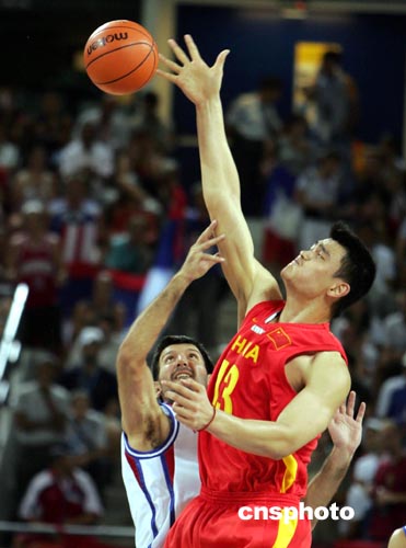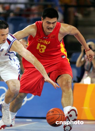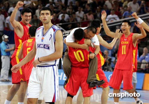 當(dāng)?shù)貢r間八月二十三日下午,中國男籃在雅典奧運(yùn)會小組賽最后一場比賽中以67:66一分險勝塞黑隊,闖入前八名,姚明打滿全場,依然是球隊獲勝的頂梁柱。中新社記者:任晨鳴