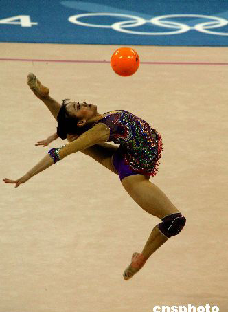 二○○二年釜山亞運(yùn)會(huì)團(tuán)體及個(gè)人全能冠軍鐘玲八月二十四日參加藝術(shù)體操賽前排練,她將代表中國(guó)隊(duì)出戰(zhàn)奧運(yùn)會(huì)藝術(shù)體操個(gè)人全能比賽。中新社記者:王瑤