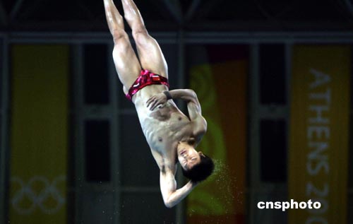 當(dāng)?shù)貢r間8月28日晚,在雅典奧運會跳水最后一項比賽--10米跳臺決賽中,奪標(biāo)呼聲最高的“跳水王子”田亮意外失手,僅僅獲得第三名。中新社記者:任晨鳴