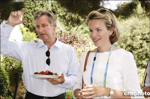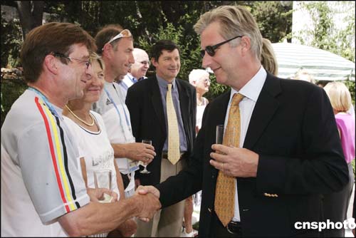 當(dāng)?shù)貢r間29日,比利時菲利普王子和王妃瑪?shù)贍柕略隈v希臘大使館會見了運動員。