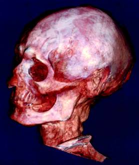 計(jì)算機(jī)化X射線軸向分層造影掃描技術(shù)也被稱為多探測器計(jì)算機(jī)X線斷層掃描技術(shù),簡稱MDCT。目前該技術(shù)已經(jīng)廣泛應(yīng)用于考古學(xué)、古生物學(xué)研究和醫(yī)療診斷。但是將該技術(shù)運(yùn)用于復(fù)原木乃伊頭骨和面容,這還是有史以來第一次。