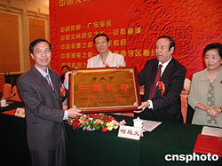 九月五日上午全國人大常委會副委員長司馬義·艾買提,在北京人民大會堂把“中國硯都”的牌匾,授予端硯故鄉(xiāng)廣東肇慶,結(jié)束了中國沒有“硯都”的歷史。作者:黃耀輝