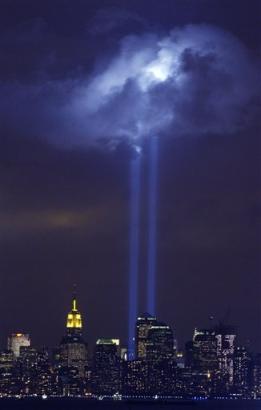 據(jù)悉,為了保證紀(jì)念活動(dòng)順利進(jìn)行,紐約政府在原世貿(mào)雙塔遺址進(jìn)行了強(qiáng)光束試射。紀(jì)念日當(dāng)天,兩束強(qiáng)光將象征當(dāng)時(shí)的世貿(mào)雙塔射向云端。