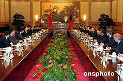 中國國務院總理溫家寶九月十三日下午在北京人民大會堂東門外廣場主持儀式,歡迎來訪的阿爾巴尼亞總理納諾。這是中阿總理三十八年來的首次會晤。中新社記者:毛建軍