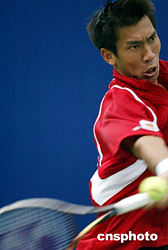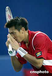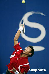 九月十五日,中國網(wǎng)球公開賽ATP男子單打比賽在北京網(wǎng)球中心的中央球場進(jìn)行,有亞洲男子單打網(wǎng)球頭號選手之稱的泰國選手斯里查潘,以六比四和七比五艱難戰(zhàn)勝法國選手利斯納德,晉級下一輪比賽。中新社記者:盛佳鵬