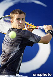 九月十八日,在北京網(wǎng)球中心中央球場(chǎng)進(jìn)行的ATP男子單打半決賽中,俄羅斯選手尤茲尼以二比零戰(zhàn)勝泰國(guó)網(wǎng)球名將斯里查潘晉級(jí)決賽。中新社記者:盛佳鵬