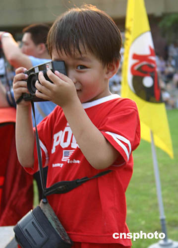 臺(tái)北小“攝影家”拍攝大陸武術(shù)表演