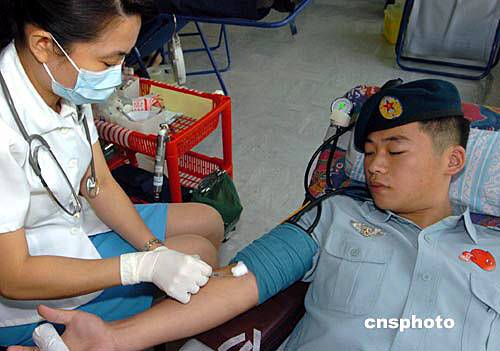中新網(wǎng)9月24日電 解放軍駐港部隊四百官兵今天在駐軍醫(yī)院,參加由香港紅十字會組織的無償獻(xiàn)血活動。他們每人獻(xiàn)出四百五十毫升血液。這是駐港部隊自一九九八年以來,第七次參加無償獻(xiàn)血活動。