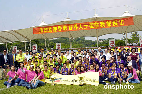 香港特首夫人董趙洪娉率各界人士于9月28日中秋節(jié)探訪中國(guó)人民解放軍駐港部隊(duì),在昂船洲軍營(yíng)與駐軍足球隊(duì)、香港明星足球隊(duì)賽后合影留念。