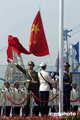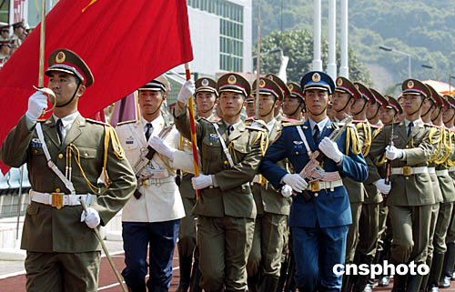 圖為駐軍三軍儀仗隊(duì)舉行升旗儀式。