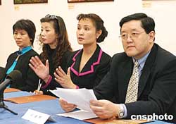 被稱為世界服裝之都的紐約,二○○四年十二月將由華人首次主辦模特選拔賽,比賽名為“美麗人生”。圖為選拔賽召集人艾冰(右二)與紐約華人總商會(huì)會(huì)長劉建邦(右)等向新聞界發(fā)布消息。據(jù)悉,在世貿(mào)組織有關(guān)紡織品配額開放后,這次比賽將給新銳服裝設(shè)計(jì)師和華人服裝廠商提供施展拳腳的機(jī)會(huì)。作者:龔文謨