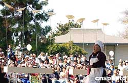美西時(shí)間十月二日,北加州華人聯(lián)盟在加州聯(lián)合城舉辦一年一度的硅谷歡慶中秋佳節(jié)及迎中國國慶游園會(huì)。圖為雜技名家夏克敏先生在題為“中國心·硅谷情”的游園會(huì)表演雜技。作者:陳鋼