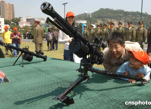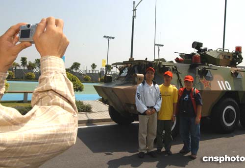 進(jìn)入營(yíng)區(qū)參觀的市民最大興趣的是,觀看軍事科目表演和部隊(duì)武器裝備展示,他們紛紛在裝甲車(chē)前拍攝留念,對(duì)武器裝備更是愛(ài)不釋手。