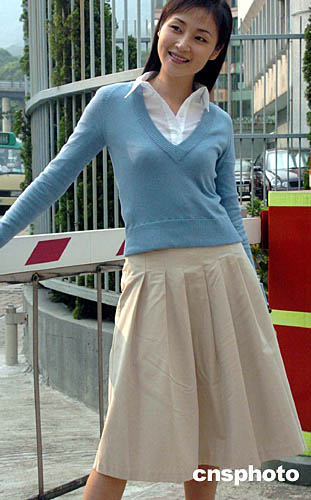 香港藝員萬綺雯出任電視劇《爸爸兩邊走》女主角,十月七日在亞視試造型。中新社記者:錢興強