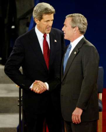 布什這次比上次表現(xiàn)好一些,對(duì)克里的批評(píng)能夠作出反擊。布什指責(zé)克里把伊拉克戰(zhàn)爭(zhēng)說(shuō)成是“在錯(cuò)誤的地點(diǎn)和錯(cuò)誤的時(shí)間打了一場(chǎng)錯(cuò)誤的戰(zhàn)爭(zhēng)”,并同時(shí)警告選民,不必指望克里當(dāng)選能促成歐洲傳統(tǒng)盟友在伊拉克問題上與美國(guó)合作。在第一場(chǎng)辯論中,布什把這段話反復(fù)重述了好幾遍,但似乎未能達(dá)到預(yù)期的效果。針對(duì)克里指責(zé)他把圍剿拉登的部隊(duì)調(diào)去打伊拉克從而削弱了全球反恐力度,布什昨天反駁說(shuō),推翻伊拉克政權(quán)是正確的,因?yàn)榉纯植皇侵挥写驌衾沁@一個(gè)目標(biāo),反恐是全球性的。這顯然是用一種新的說(shuō)法來(lái)證明出兵伊拉克是正確的。