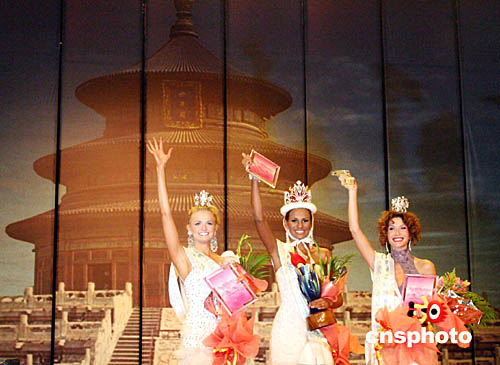 第四十四屆“國際小姐”總決賽十月十六日晚在北京工人體育館落幕。希臘選手Olga Kypriotou榮獲“探花”,美國小姐Amy Holbrook獲亞軍。哥倫比亞小姐Jeymmy Paola Vargas獲得冠軍。作者:韓藝冰