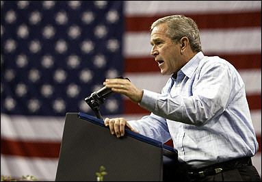 布什總統(tǒng)周六在佛羅里達州向支持者發(fā)表演說,他抨擊了克里在稅收政策上的記錄,試圖激起選民對于民主黨執(zhí)政期間稅負過重的擔憂。