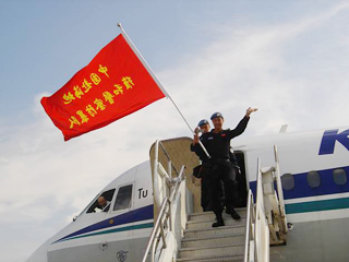 中新網(wǎng)10月18日電 據(jù)中國外交部消息,10月17日下午14時30分,中國派駐海地維和防暴隊大部隊一行共95人乘坐聯(lián)合國專機(jī)安全抵達(dá)海地首都太子港國際機(jī)場,聯(lián)合國駐海地有關(guān)官員及中國駐海地商代處張伯清代表前往機(jī)場迎接。