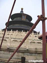 中新網(wǎng)10月21日電 北京娛樂信報(bào)報(bào)道,天壇祈年殿昨天開工大修,此舉也拉開了北京世界遺產(chǎn)大規(guī)模修繕的帷幕。據(jù)悉,本次大修投資2000多萬元,是今年北京市投資最大的文物修繕項(xiàng)目。