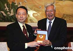 全國(guó)政協(xié)副主席羅豪才十月二十三日在北京會(huì)見(jiàn)以資深大律師陳景生為首的香港大律師公會(huì)訪京團(tuán)。作者:毛建軍