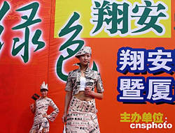 廈門新設(shè)區(qū)——翔安區(qū)二十四日與廈門日報(bào)聯(lián)合舉辦文化活動。報(bào)紙DIY時裝模特登臺亮相,造型新奇別致,獨(dú)具韻味,引人駐足觀賞。作者:楊伏山