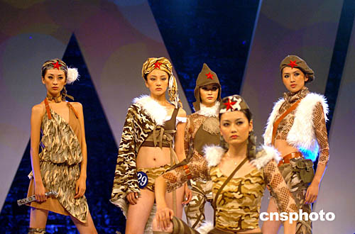 二零零四“武林衣秀”杯中國國際女裝設(shè)計(jì)大賽總決賽二十四日晚在“人間天堂”杭州舉行。來自法國、美國、韓國和中國等國家的三十六位設(shè)計(jì)師帶來了一百八十套華服,在“時(shí)尚源于生活”的主題下,以不同角度詮釋時(shí)尚概念。作者:張茵