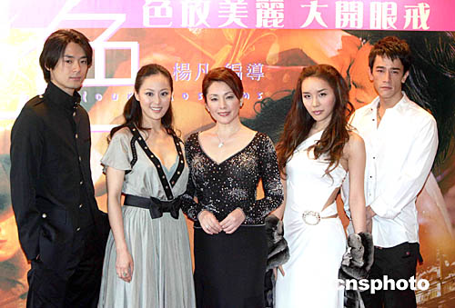 演員吳嘉龍、河利秀、松坂慶子、章小蕙、sho(右起)出席為電影宣傳造勢(shì)。