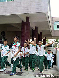 “不害怕,有些累!蔽迥昙(jí)的莊胤同學(xué)對(duì)記者說起參加防空演習(xí)的感受,他說平時(shí)學(xué)校體育課多是慢跑,今天的快跑讓他有些喘不過氣。小家伙表示今后要多鍛煉身體。學(xué)校的梁老師告訴記者,“作為校本科程,學(xué)校近年加強(qiáng)對(duì)小學(xué)生軍事知識(shí)講座,包括國(guó)防科普、空襲知識(shí)和伊拉克戰(zhàn)爭(zhēng)等。”