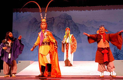 十月二十九日晚,廣東粵劇團(tuán)、廣州紅豆粵劇團(tuán)聯(lián)合在廣州首演多媒體青春粵劇《夢驚西游》,對唐僧師徒四人進(jìn)行了一個(gè)人性化地全新演繹。作者:劉衛(wèi)勇