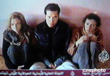 10月31日,半島電視臺(tái)播出了有關(guān)聯(lián)合國(guó)人質(zhì)近況的錄像。從抓拍的畫面中可以看到3名被“穆斯林軍”綁架的聯(lián)合國(guó)人質(zhì)。綁匪定下了3天的期限,讓外國(guó)軍隊(duì)和聯(lián)合國(guó)機(jī)構(gòu)撤離阿富汗,否則就殺了這些人質(zhì)。