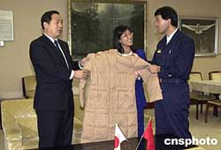 中新社新瀉十一月三日電(記者王健)來自中國黑龍江省的一千件羽絨服今天運抵日本新瀉地震災區(qū),這是黑龍江省作為該縣的友好省,向當?shù)貫膮^(qū)民眾捐贈的御寒物品。