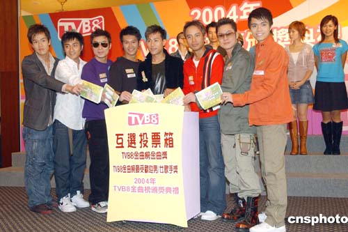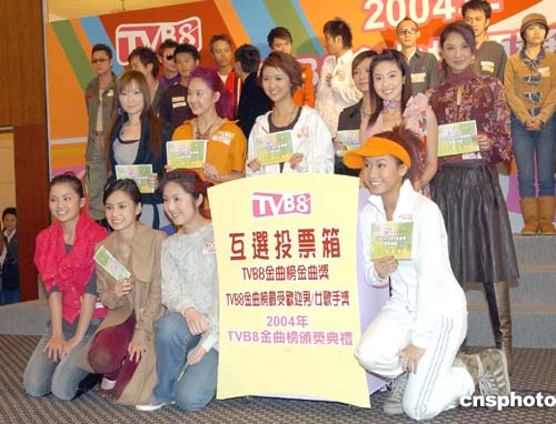 《2004年TVB8金曲榜頒獎(jiǎng)典禮》11月3日在香港舉行記者會(huì),出席活動(dòng)的女歌星參與互選投票。作者:鄧慶樂