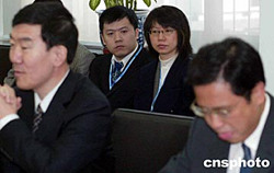 農(nóng)業(yè)部副部長牛盾,十一月十日在北京與臺(tái)灣前民進(jìn)黨主席許信良率領(lǐng)的“兩岸農(nóng)業(yè)交流訪問團(tuán)”,就加強(qiáng)兩岸農(nóng)業(yè)合作等問題舉行座談。許信良子女(中)亦出席座談會(huì)。中新社記者:滿會(huì)喬