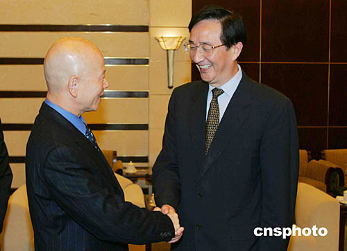十一月十一日,中共上海市委書(shū)記陳良宇在上海會(huì)見(jiàn)由臺(tái)灣知名人士許信良率領(lǐng)的臺(tái)灣“兩岸農(nóng)業(yè)交流訪問(wèn)團(tuán)”一行。陳良宇對(duì)臺(tái)灣專(zhuān)家來(lái)滬交流農(nóng)業(yè)經(jīng)驗(yàn)表示歡迎。作者:潘索菲