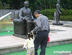 11月12日是孫中山先生誕辰138周年,臺北舉辦一系列活動予以紀(jì)念。圖為一位臺灣民眾帶著孫女在孫中山紀(jì)念館前。中新社記者:董會峰