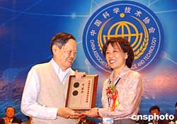 開幕式上還舉行頒獎儀式,認知科學和實驗心理學家、中國科學院生物物理研究所陳霖教授獲二00四年香港求是基金會“杰出科學家獎”,獎金一百萬元人民幣,該基金會出資人、已九十一歲高齡的香港愛國實業(yè)家查濟民親自向陳霖頒獎。安徽中科大訊飛信息有限公司總裁劉慶峰等五人榮獲本年度“中國科協(xié)求是杰出青年成果轉(zhuǎn)化獎”,另有十五位青年才俊獲“中國科協(xié)求是杰出青年實用工程獎”。